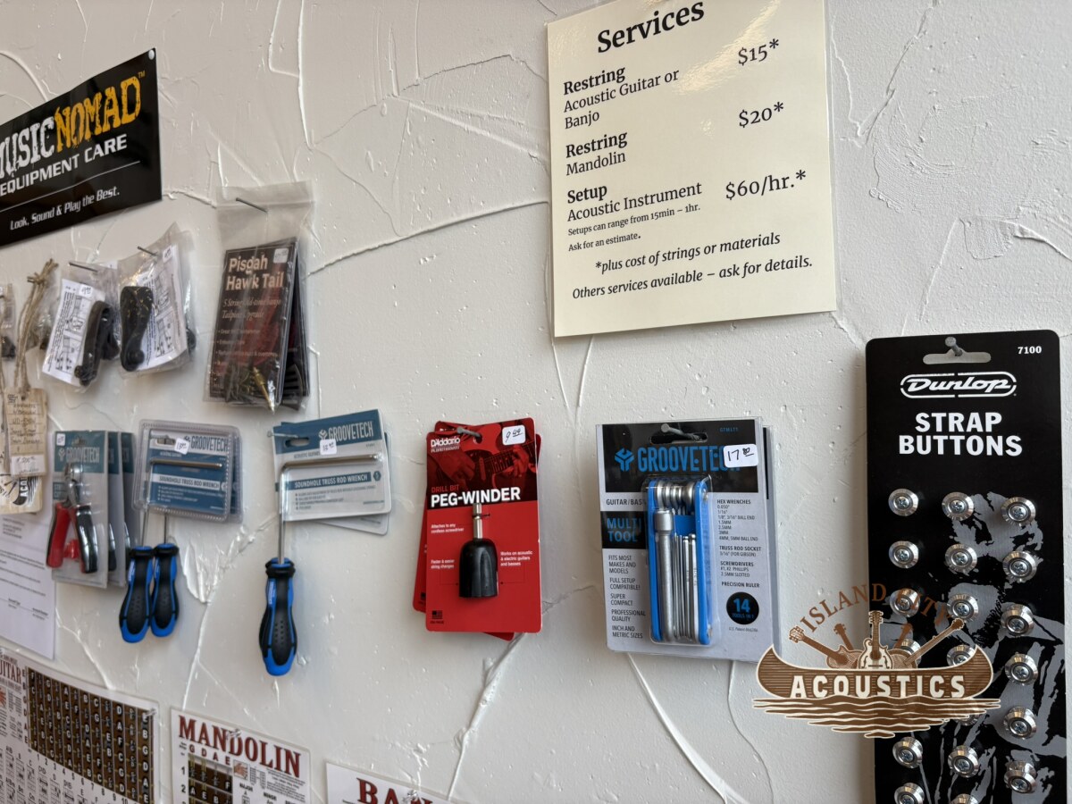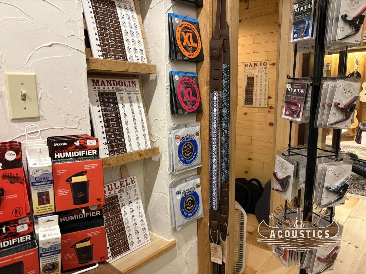 Popular brands, sizes, types for guitar (acoustic & electric), mandolin, banjo, violin, dulcimer, ukulele, dobro.